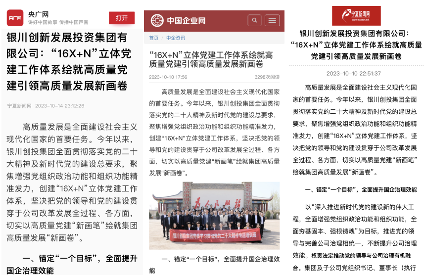 近日,央廣網(wǎng)、中國(guó)企業(yè)網(wǎng)、寧夏新聞網(wǎng)等主流媒體聚焦國(guó)企高質(zhì)量發(fā)展的生動(dòng)實(shí)踐,深度報(bào)道了銀川創(chuàng)投集團(tuán)黨的建設(shè)成果。